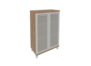 Офисный шкаф средний широкий KST-2.4R №27153 - столешница: дсп 36 мм, кромка: пвх, покрытие: ламинат, стекло: матовое.
