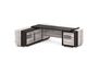 Стол с тумбой и греденцией L-20пр/л №49633 - кромка: пвх, покрытие: ламинат, стекло: бронза сатинат в алюминиевом профиле, цвет профиля - коньяк.